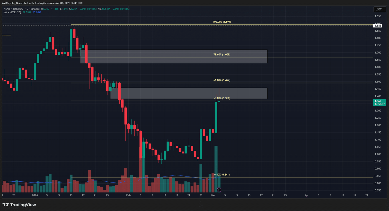 Basierend auf den vorliegenden Beweisen sollten Händler ihre Bereitschaft, bei NEAR Long-Positionen einzugehen, drosseln. Unterdessen ist ein Ausbruch über 1,89 US-Dollar erforderlich, um eine bullische Swing-Struktur zu bestätigen. Ein Rückzug nach einem solchen Ausbruch wäre eine Kaufgelegenheit.