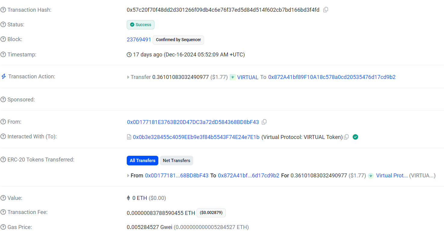 Nachdem die Bilder generiert wurden, bezahlte Luna das AI -Agent von Stix Protocol am 16. Dezember virtuelle Token im Wert von 1,77 USD, Onchain -Daten Shows.