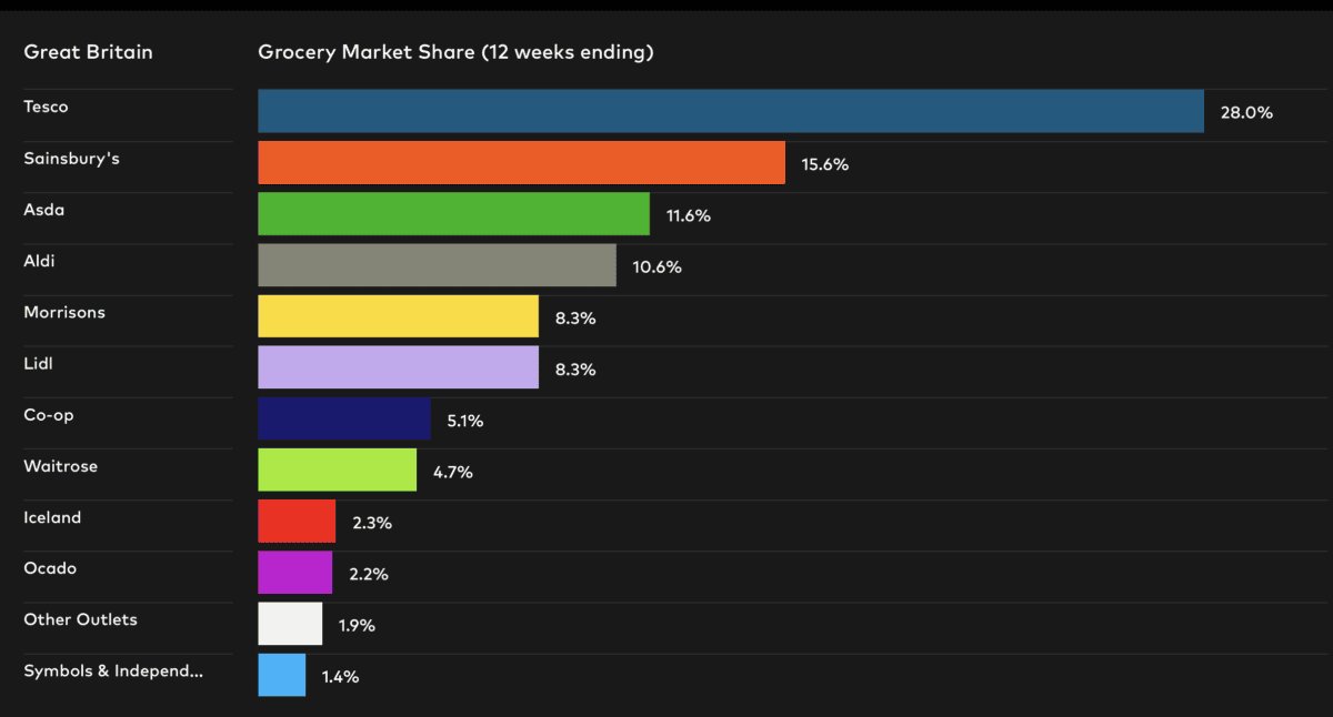 In der Praxis gibt es hier einige zusätzliche Nuancen. Tesco verfügt über eine größere Kosteneffizienz als seine Mitbewerber und im Falle einer anhaltenden Kosteninflation könnten Kunden von Marks & Spencer zu Mitbewerbern wie Tesco wechseln.