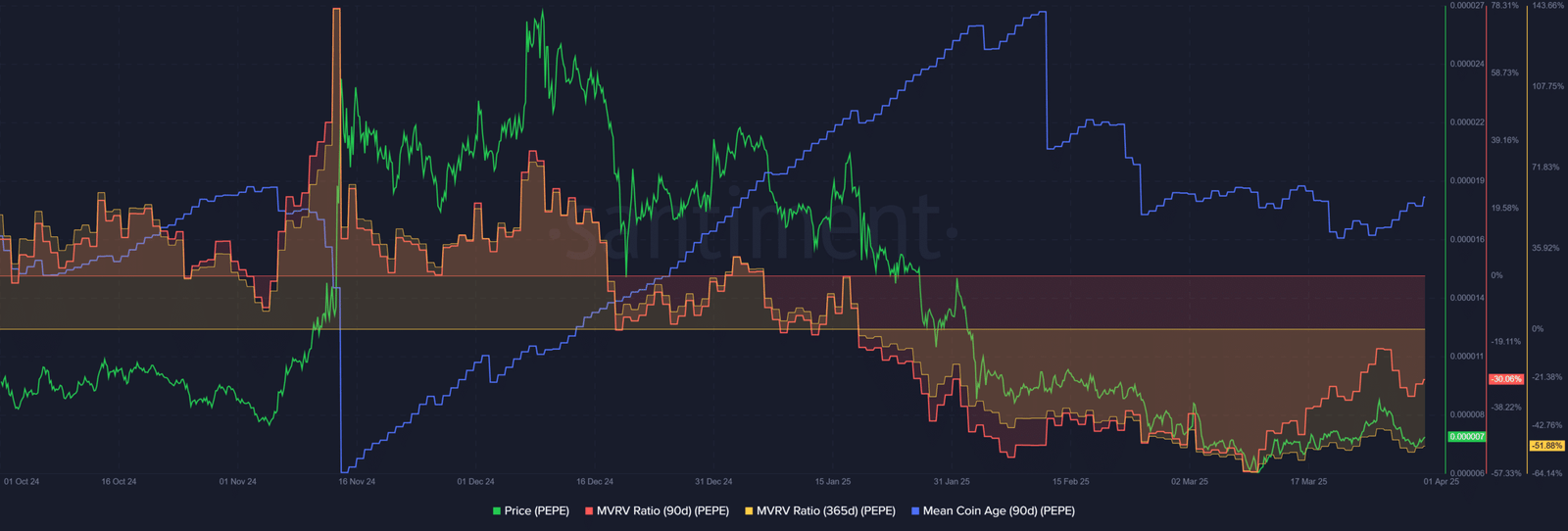 Dies deutete auf einen Mangel an Akkumulation hin, aber auch, dass der Verkaufsdruck von längerfristigen Inhabern nachlässt. Dies könnte eine gute Nachricht für Investoren sein, die Pepe kaufen möchten.