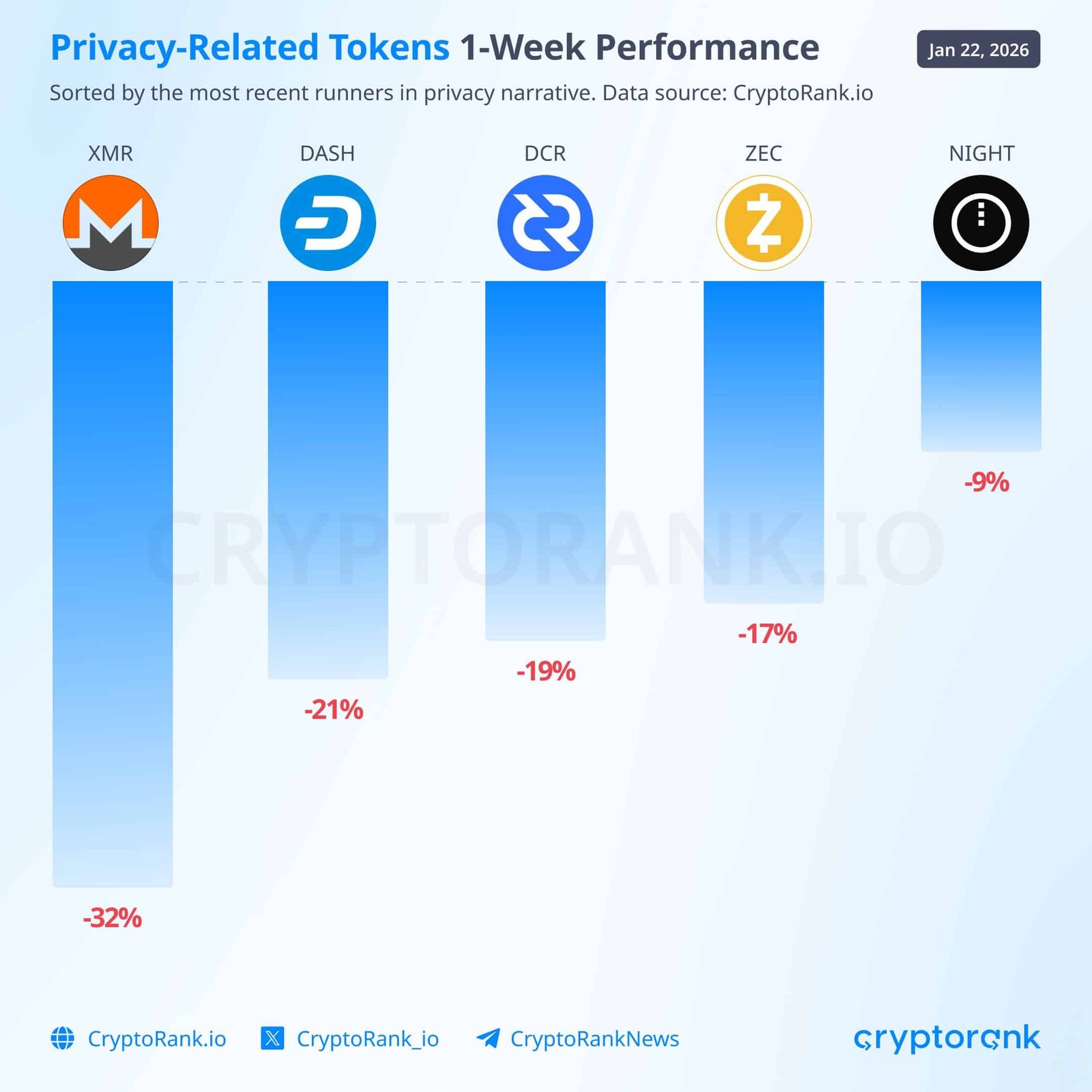 Der synchronisierte Rückgang bei den Privacy Coins deutet eher auf ein breites Risikoscheu-Umfeld als auf vermögenswertspezifische Katalysatoren hin.