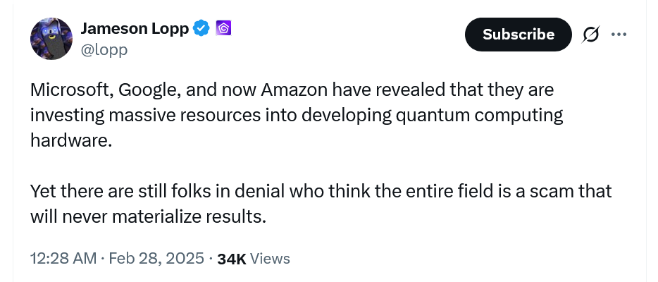 Bitcoin Cypherpunk Jameson Race vor kurzem sagte Die Frage, wie besorgt die Branche um Quantencomputer geht, ist derzeit „unbeantwortbar“.