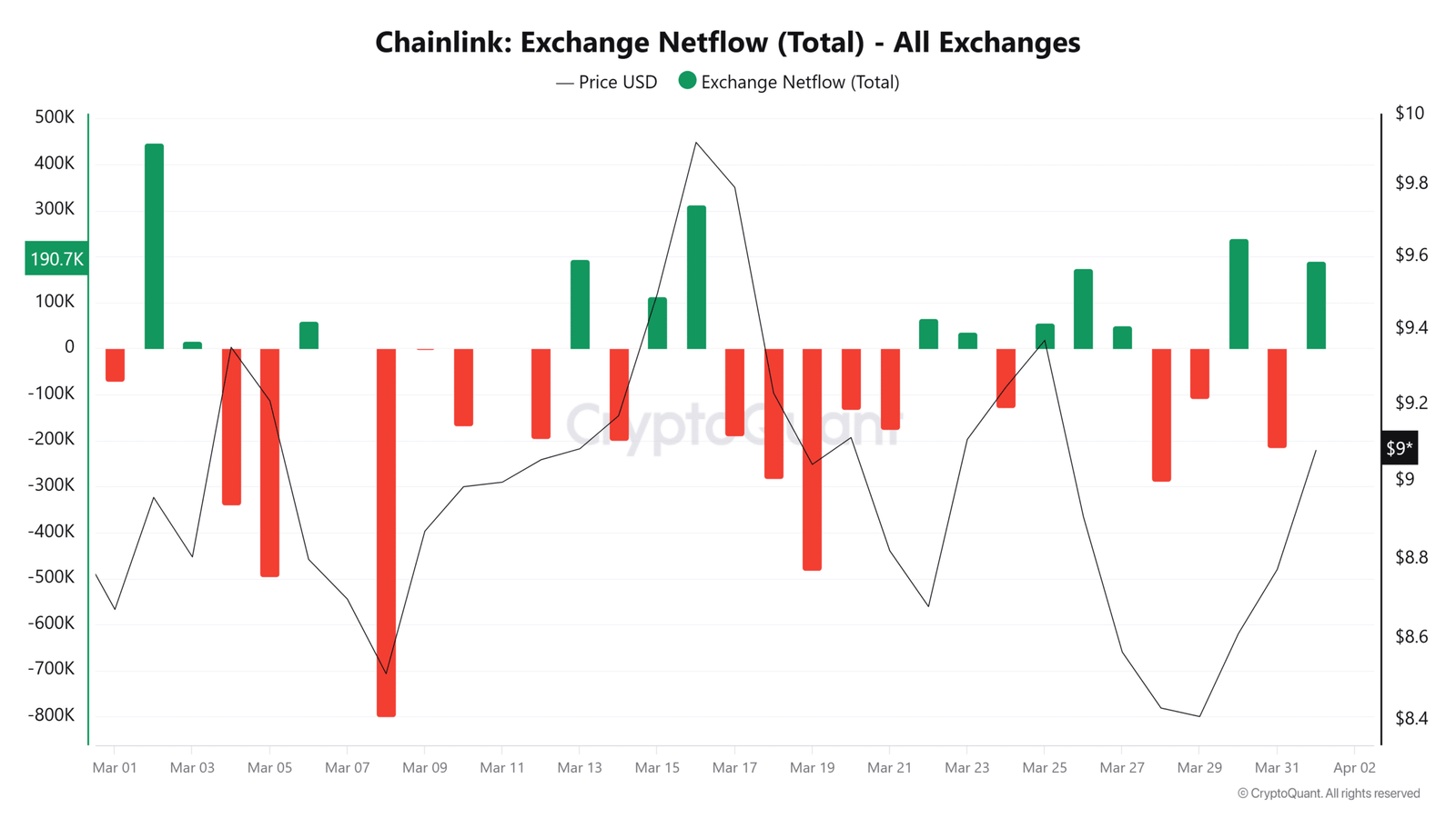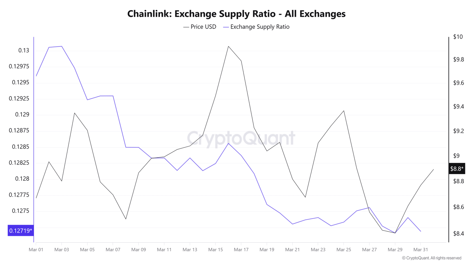 - Chainlink blieb unter 10 US-Dollar, nachdem es Mitte März die Unterstützung durchbrochen hatte, und der Preis fiel auf 8,2 US-Dollar.
