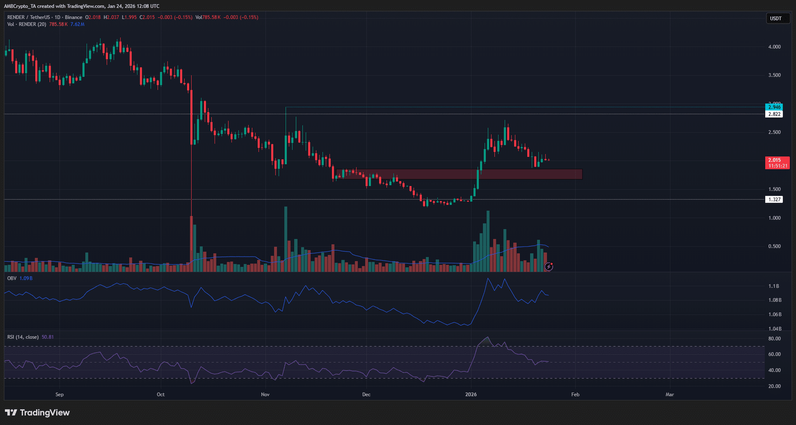 Die positiven Zeichen waren da. Der OBV erreichte einen neuen Höchststand, als RENDER vor zwei Wochen auf 2,71 US-Dollar stieg, was zeigt, dass die Käufer den Markt dominieren. Auch der tägliche RSI blieb über dem neutralen Wert von 50, was darauf hindeutet Aufwärtsdynamik wurde durch das Retracement nicht vollständig gelöscht.