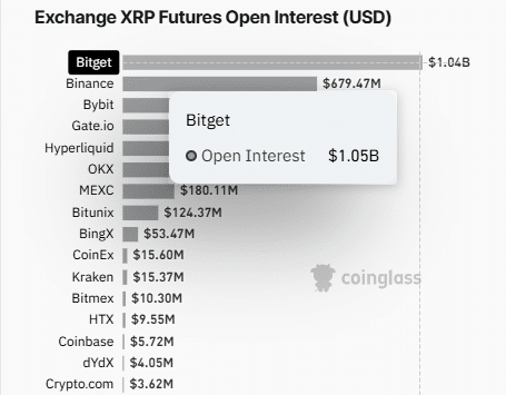 Andererseits spiegelt sich dieses bullische Gefühl auch in anderen Börsen wider, einschließlich Bitget, was zu einem erheblichen Anstieg des offenen Zinses zu verzeichnen ist und jetzt 1,04 Milliarden US -Dollar erreichte.