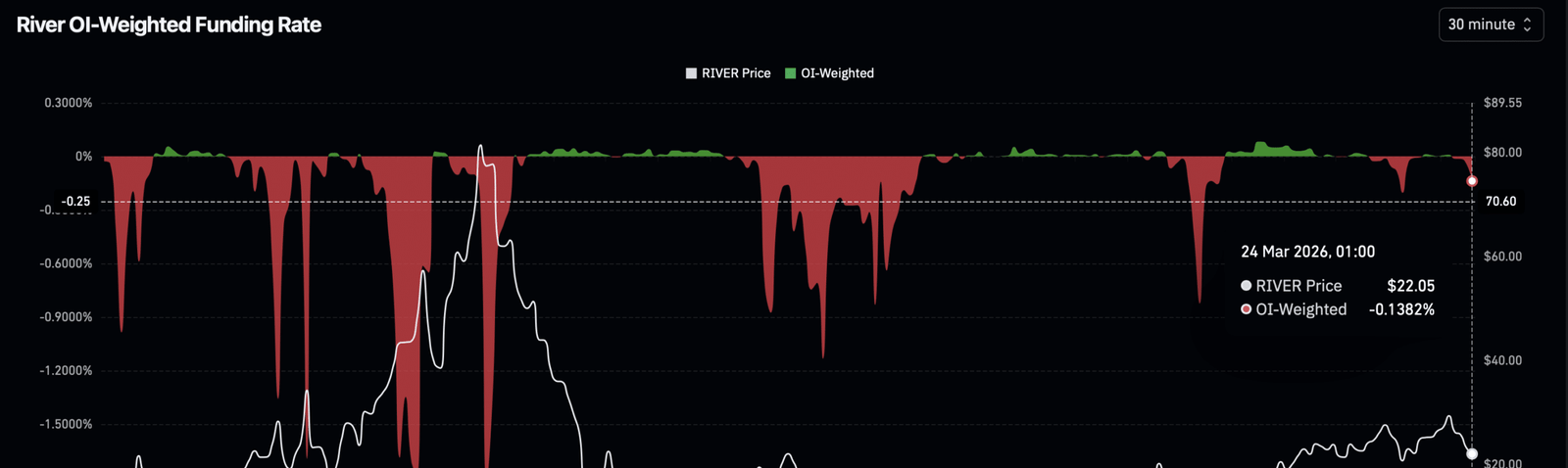 Eine Analyse der Kapitalflüsse auf dem Perpetual-Futures-Markt, einem Haupttreiber der Volatilität, deutet auf einen anhaltenden Druck auf RIVER hin.