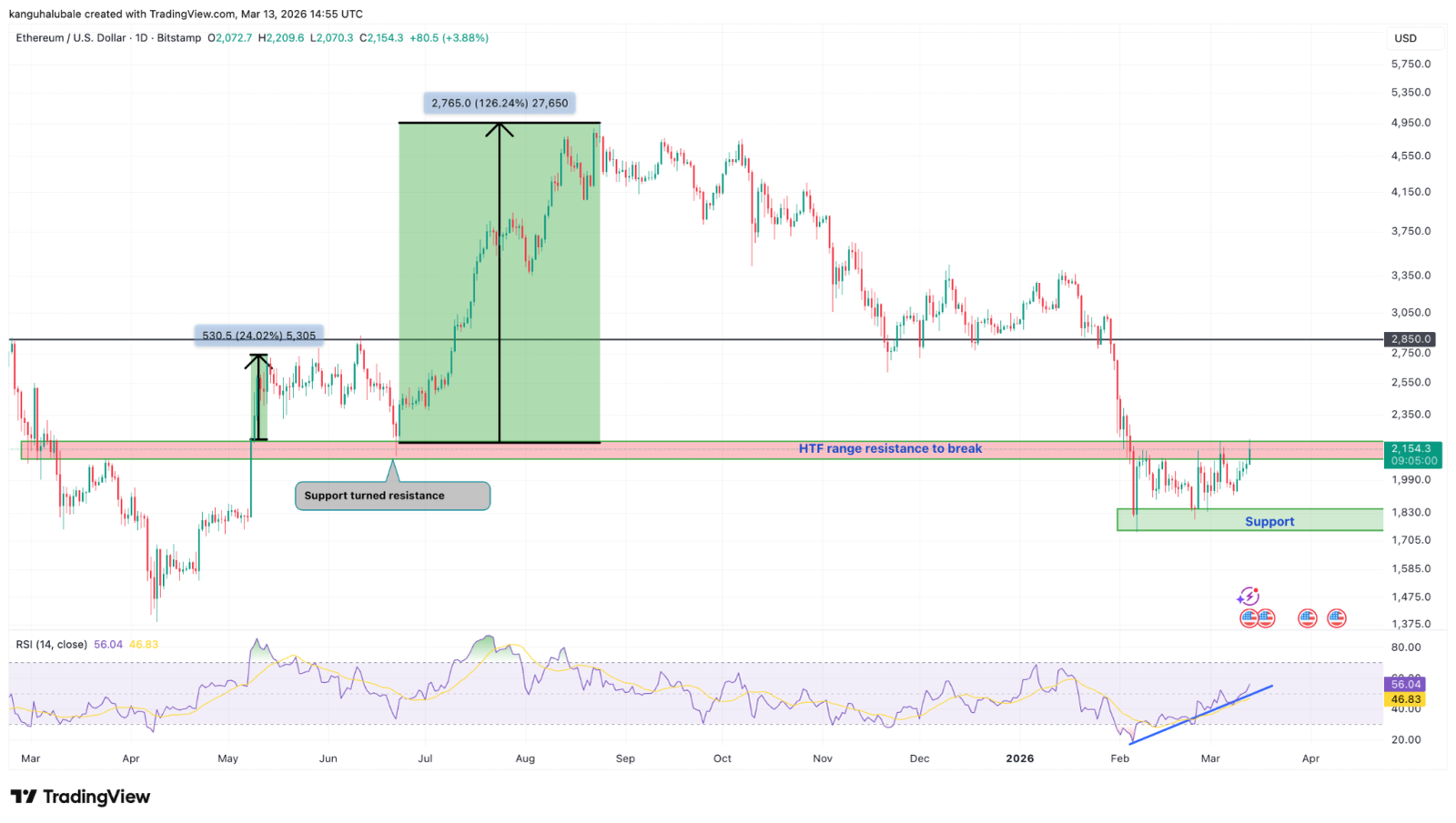 Als Cointelegraph berichteteein entscheidender Durchbruch über den Widerstand von 2.100 $ und den 50-Tage-EMA bei 2.200 $ wird die Bullen als nächstes auf 2.600 $ zielen lassen.