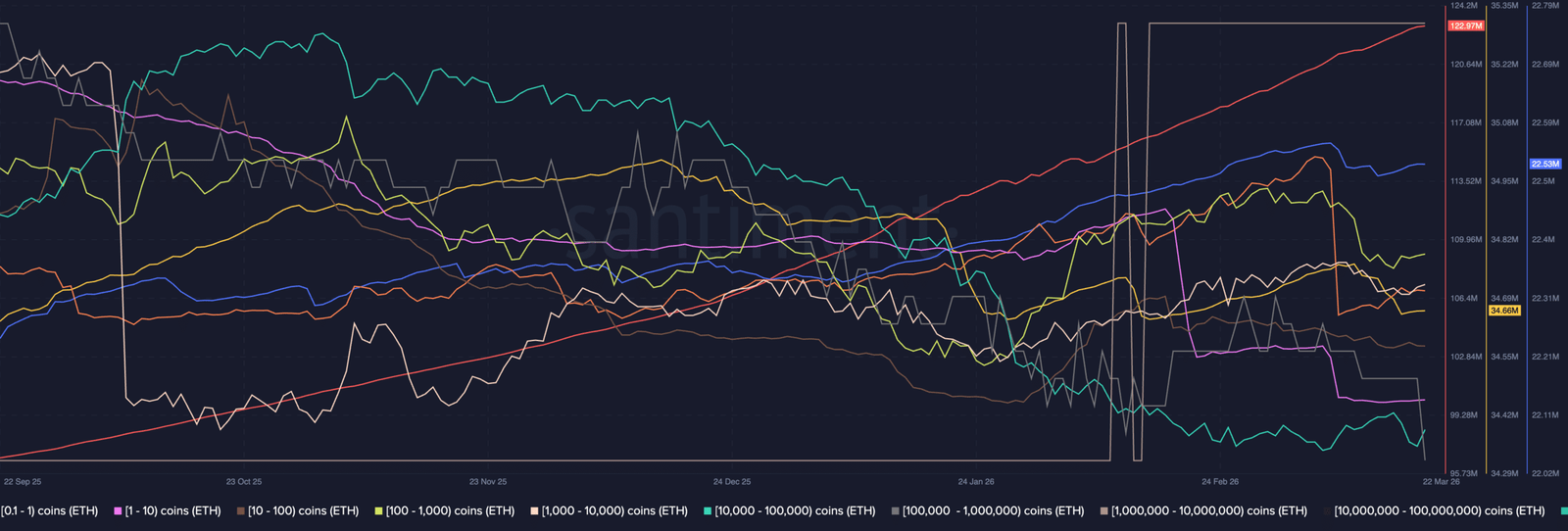 Bei näherer Betrachtung zeigt sich jedoch, dass große Wale ihre Bestände stetig erhöhen, während mittelgroße Anleger offenbar verkaufen oder umverteilen.