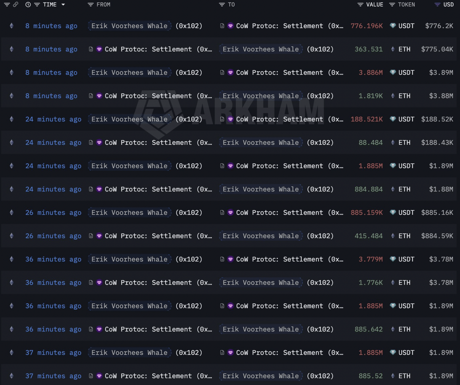 In den letzten zwei Wochen hat ein großer Wal, der Berichten zufolge mit Erik Voorhees, dem Gründer von ShapeShift, in Verbindung steht, fast 260 Millionen US-Dollar in USDT eingesetzt, um mehr als 120.000 ETH anzuhäufen.