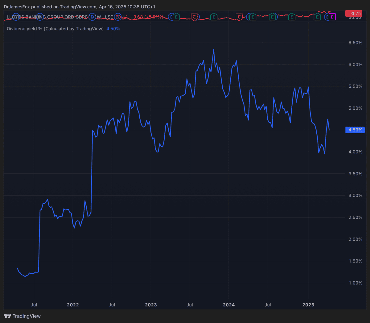 Natürlich bestehen Risiken bestehen. Die britische Wirtschaft könnte aufgrund von US -Zöllen eine Verlangsamung ausgesetzt sind, und das ist wirklich nicht gut für Banken, was in der Regel die Gesundheit der Wirtschaft widerspiegelt. Es ist jedoch immer noch ein interessanter Vorschlag. Persönlich hält ich mich nur an meinen Lloyds -Aktien fest, anstatt aufgrund des Konzentrationsrisikos mehr zu kaufen.