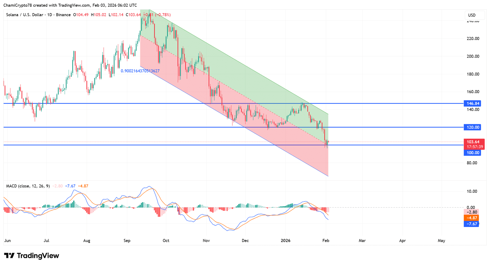 Der Preis von Solana hat sich deutlich von der 100-Dollar-Unterstützung erholt, einem Niveau, das wiederholt Nachfrage angezogen hat. Von dieser Basis aus hat sich der Preis auf 104 US-Dollar erholt, was die Käuferpräsenz bestätigt.