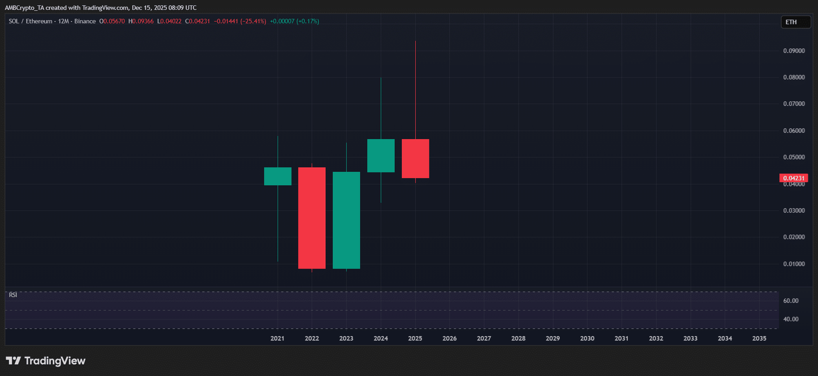 Das bedeutet, dass der Rückgang von SOL fünfmal größer ist als der von ETH, was einem Rückgang des SOL/ETH-Verhältnisses um 25 % entspricht. Kurz gesagt, 2025 war ein Jahr, in dem ETH eine Outperformance erzielte.