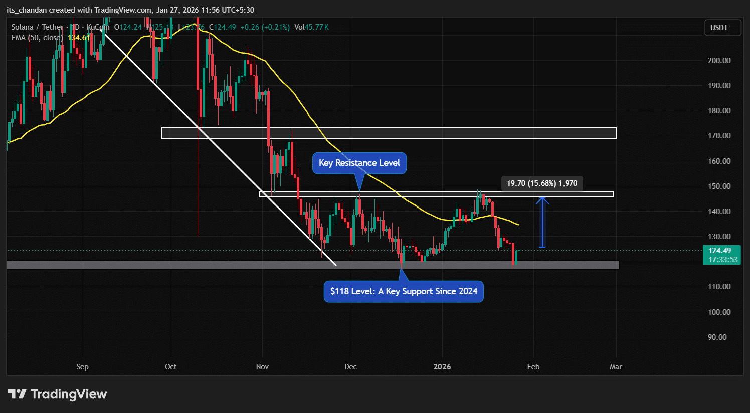 Diese bullische These würde nur bestätigt, wenn der SOL-Preis über der 118-Dollar-Marke bleibt; andernfalls könnte es ungültig werden.