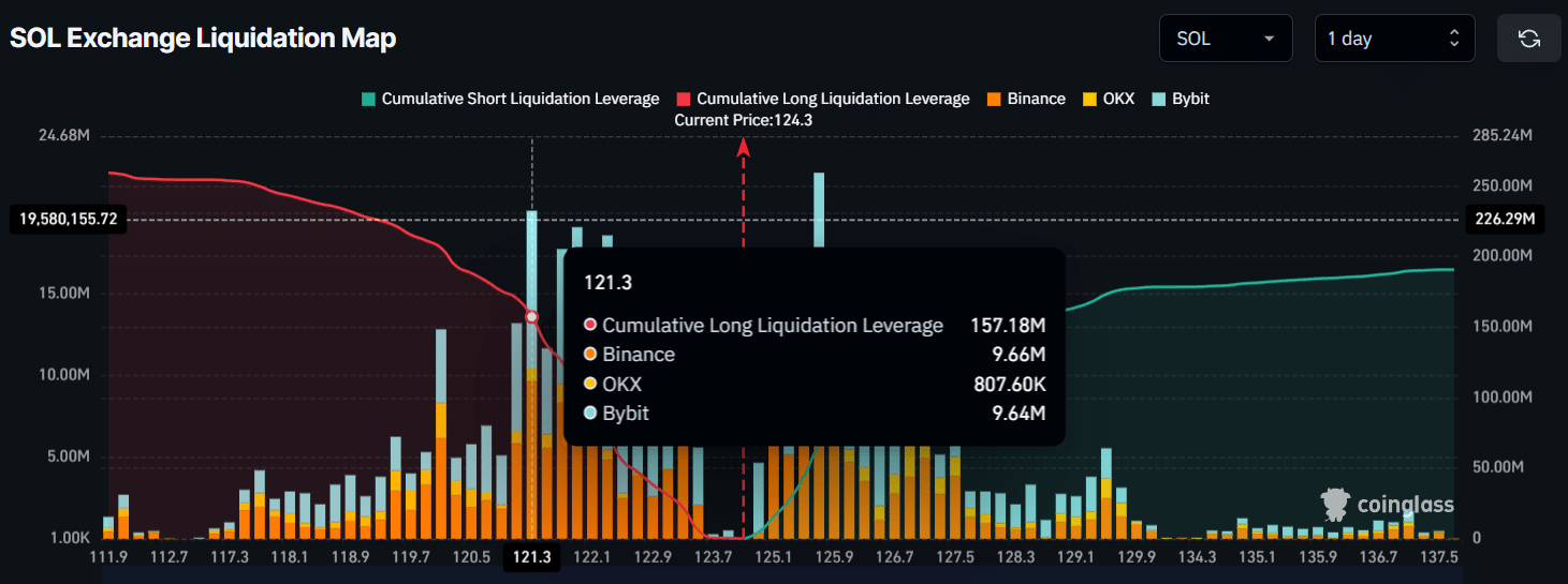 Intraday-Händler scheinen sich der zinsbullischen Preisbewegung anzuschließen. Laut Daten des Derivate-Analysetools CoinGlasssind Händler derzeit mit 121,3 $ nach unten und 125,7 $ nach oben überschuldet.