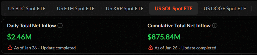 Unterdessen wuchs das Interesse von Wall-Street-Investoren und institutionellen Anlegern trotz anhaltender Marktunsicherheit weiter, was sich in den Aktivitäten rund um die in den USA gehandelten Solana Exchange-Traded Funds (ETFs) widerspiegelte.