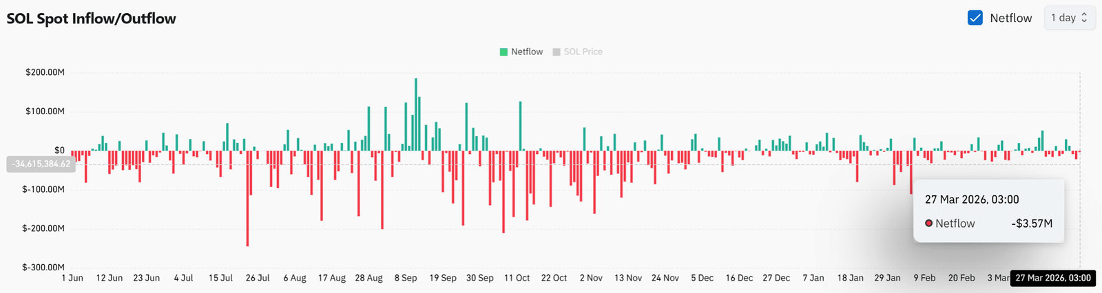 Dieser Zufluss erfolgt jedoch in einer Zeit, in der das breitere Angebot weiterhin eingeschränkt ist, was zu widersprüchlichen Verhältnissen führt. Während ein großer Teilnehmer die Liquidität in Richtung Börsen gedrängt hat, deutet das Gesamtverhalten auf einen anderen Trend hin SOL.