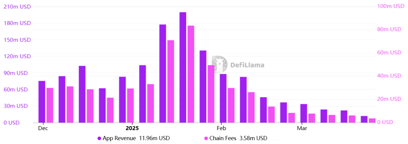 Einige mögen argumentieren, dass sich das Solana -Ökosystem weit über den Memecoin -Handel und Token -Launchpads hinaus erstreckt, da sich der Gesamtwert (TVL) über flüssige Einbindungen, die kollateralen Kredite, synthetische Assets und Ertragplattformen aufgebaut hat. Solanas Gebühren und DAPP -Einnahmen sind jedoch weiter zurückgegangen. Eine reduzierte Aktivität der Anchain reduziert die Anziehungskraft von SO und begrenzt so das Aufwärtspotenzial.