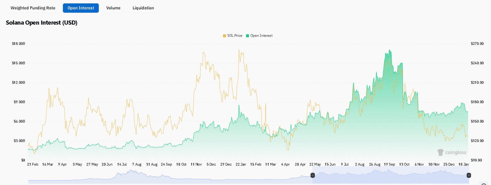 Die Daten von CoinGlass zeigten einen beunruhigenden Trend: Open Interest (OI) stieg von 6,6 Milliarden US-Dollar Ende Dezember auf über 8,8 Milliarden US-Dollar im Januar, aber der Preis fiel weiter. Dies ist kein bullisches Signal.