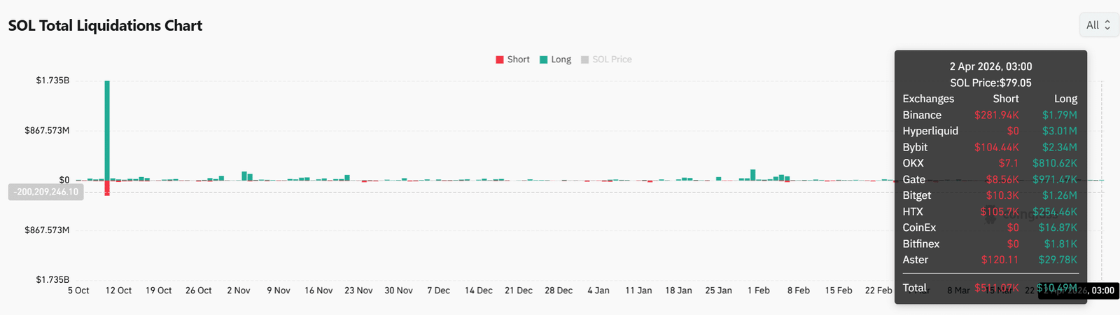 Es kam zu über 10,49 Millionen US-Dollar an Long-Liquidationen, verglichen mit 511.070 US-Dollar an Short-Liquidationen. Diese Lücke zeigte, dass bullische Händler wiederholt vertrieben wurden.
