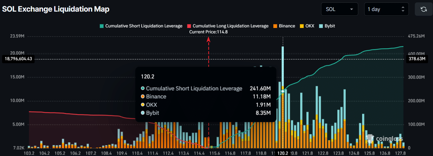 Den Daten von CoinGlass zufolge überwachen Intraday-Händler zwei kritische Preisniveaus genau. Auf der Abwärtsseite liegt der Fokus auf 112,8 US-Dollar, während auf der Oberseite die Aufmerksamkeit auf 120,2 US-Dollar gerichtet ist.