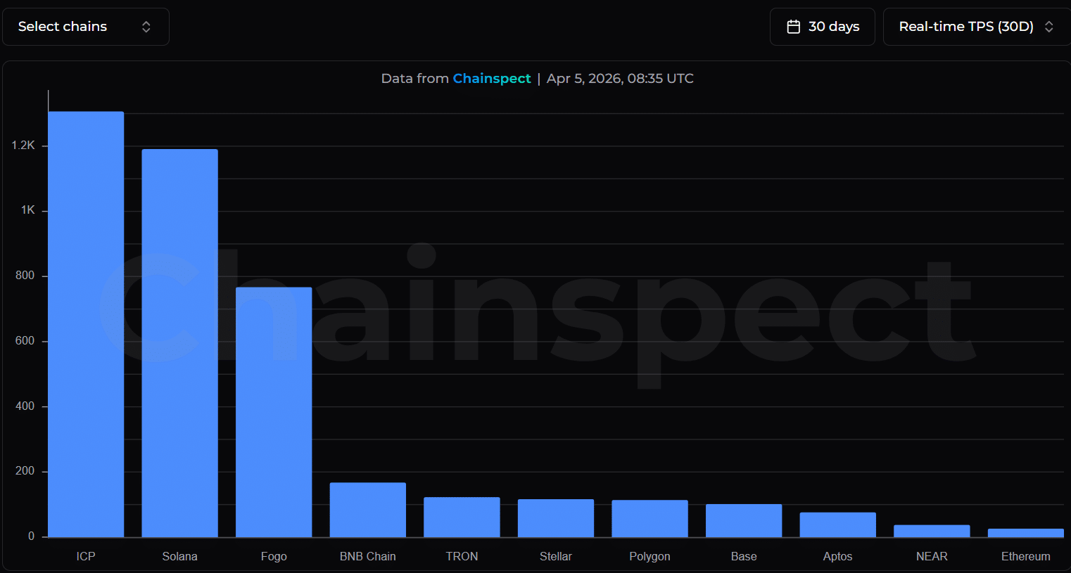 Wie die obige Grafik zeigt, belegt Solana mit 1.191 Echtzeittransaktionen pro Sekunde (TPS) den zweiten Platz unter allen Blockchains, verglichen mit 25,99 TPS bei Ethereum. Dadurch kann Solana enorme Transaktionslasten effizient bewältigen, was ihm einen klaren Vorsprung bei DeFi verschafft, womit langsamere L1s wie Ethereum immer noch zu kämpfen haben.