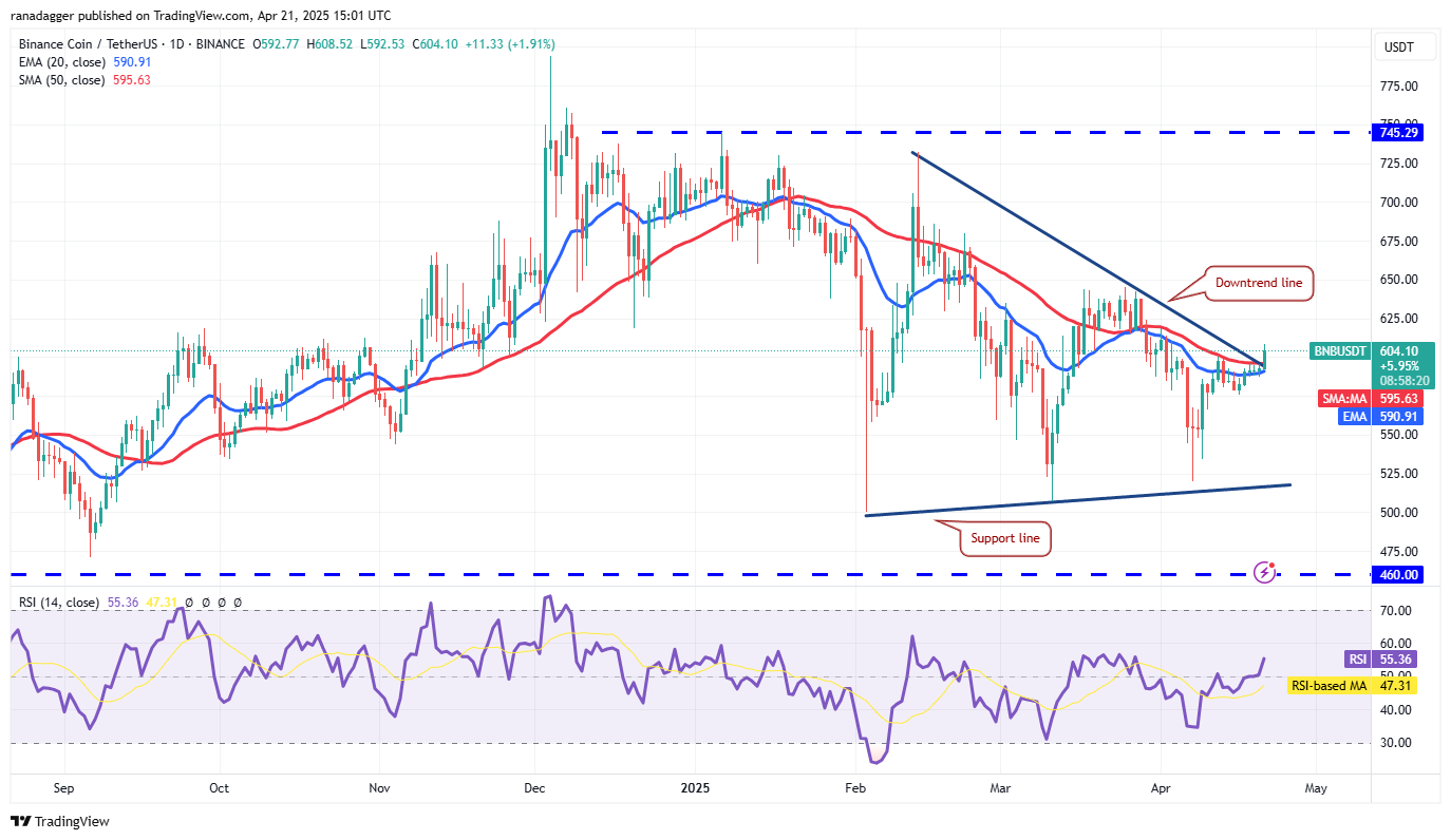 BNB (BNB) brach am 21. April aus der Abwärtstrendlinie aus, was darauf hinweist, dass die Bullen versuchen, die Kontrolle zu übernehmen.