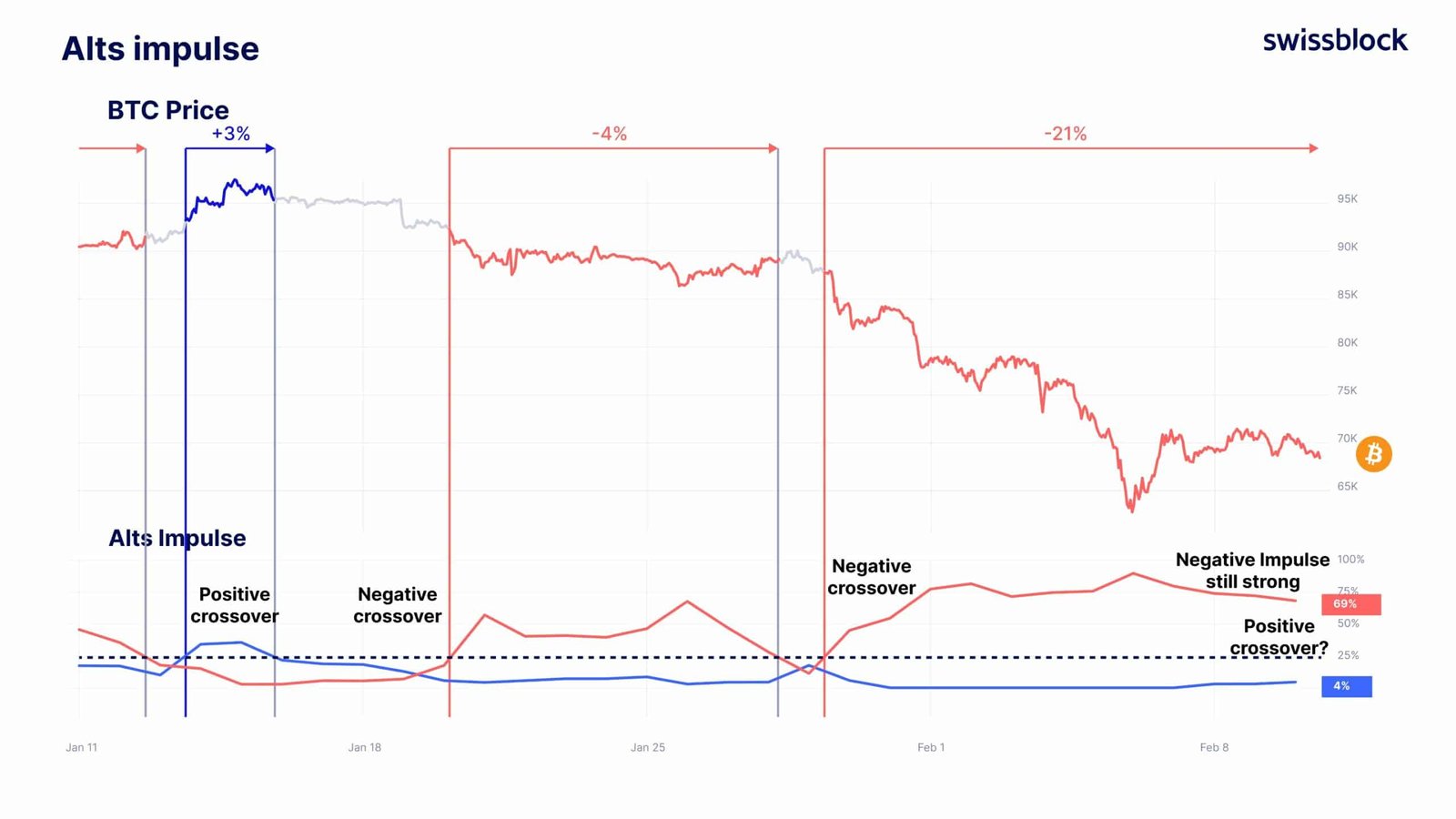 Nach Angaben des Analyseunternehmens Swissblockkämpft der Sektor immer noch mit der starken rückläufigen Dynamik. Der Druck könnte jedoch nachlassen, da das Unternehmen sein hochpräzises, proprietäres Alts-Impulssignal anführt.