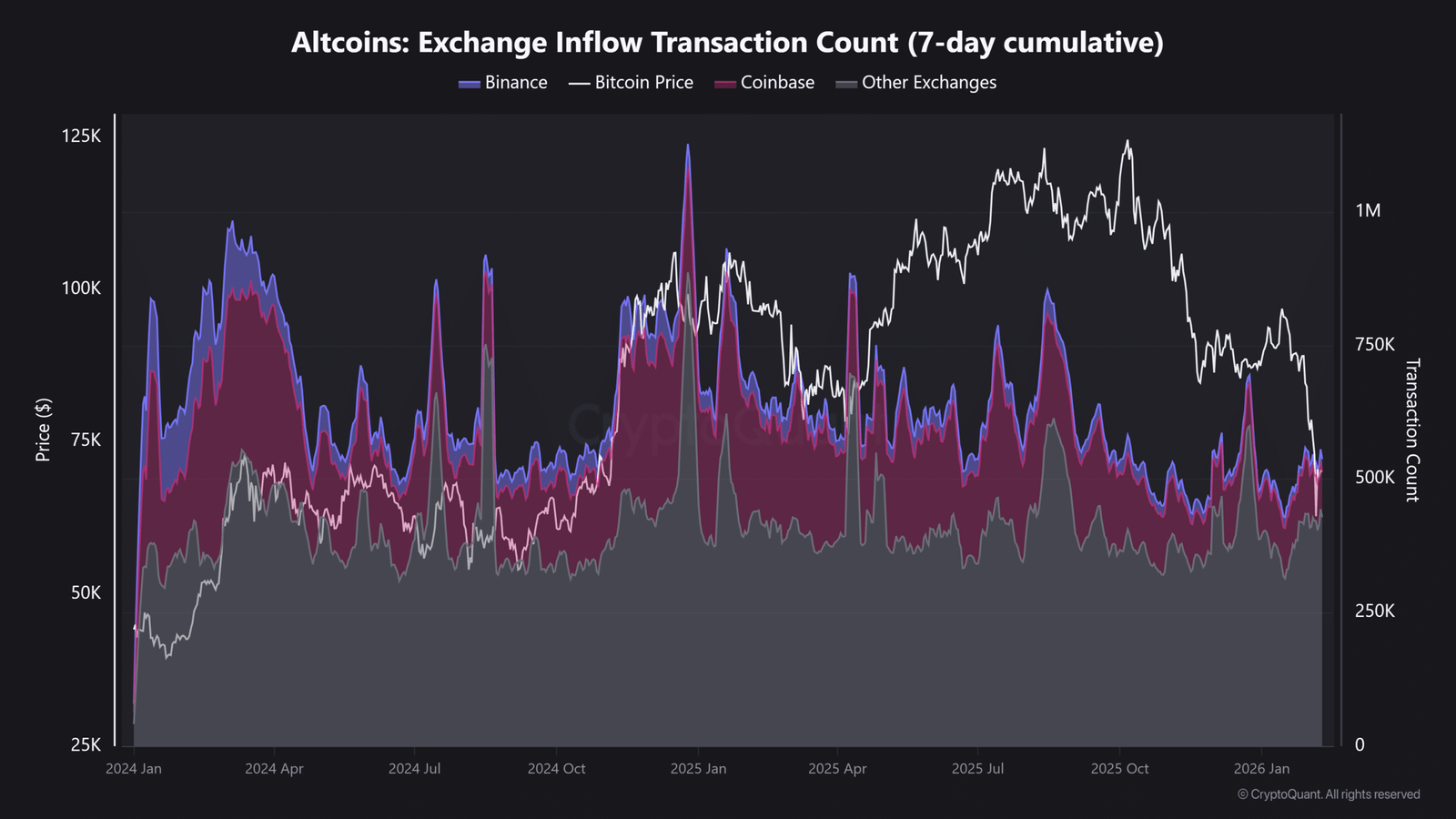 Als der Preis von BTC ab Mitte Januar unter 95.000 US-Dollar fiel, intensivierte sich auch der Altcoin-Ausverkauf bei Binance, was durch steigende Altcoin-Zuflüsse angezeigt wird.