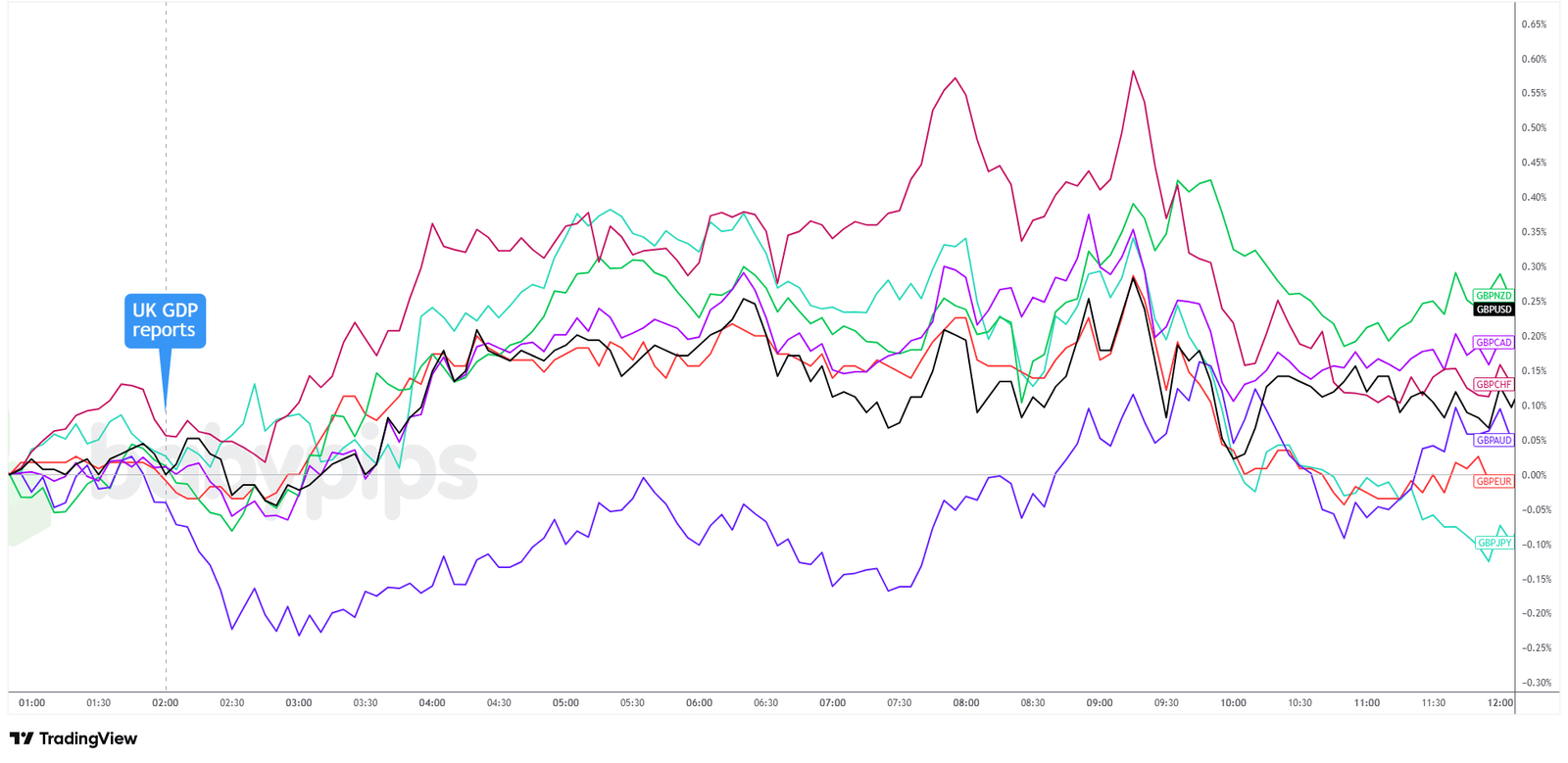 Overlay von GBP gegenüber den wichtigsten Währungen Diagramm von TradingView