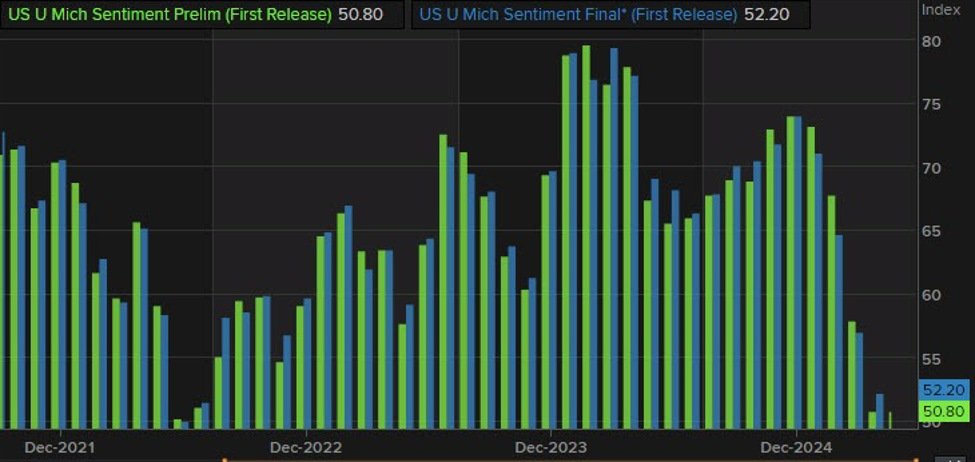 - Univ of Michigan Sentiment Final 52.2 vs 51.0 Schätzung
