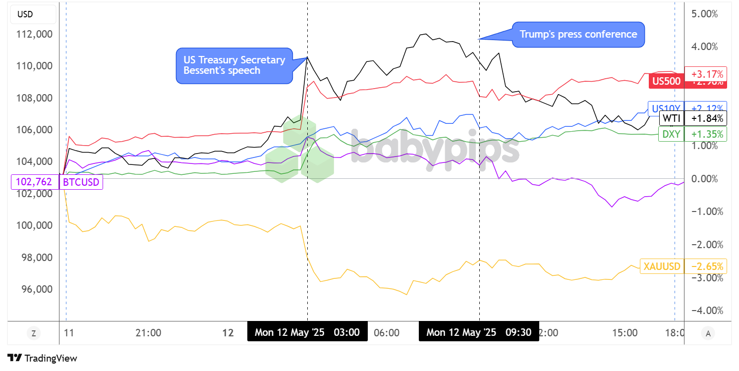 Das Greenback begann den Tag mit ein wenig Angst, während Händler den Atem anhielten und auf weitere Details zu den Gesprächen der US-China warteten, um aufzutreten. Die Ankündigung des Finanzministers Bessent bestätigte die Deeskalation sowie ein 90-tägiger Handelswaffenstillstand als viel besser als erwartete Nachrichten für Dollarbullen, was zu einer starken Rallye auf der ganzen Linie führte.