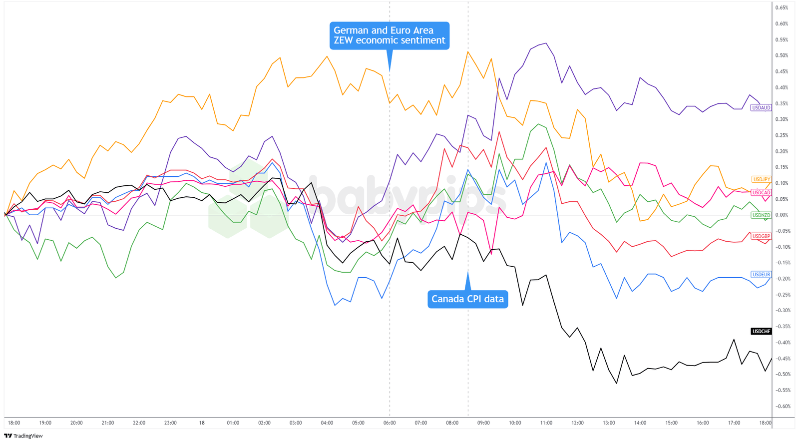 Überlagerung von USD gegenüber großen Währungen Diagramm von TradingView