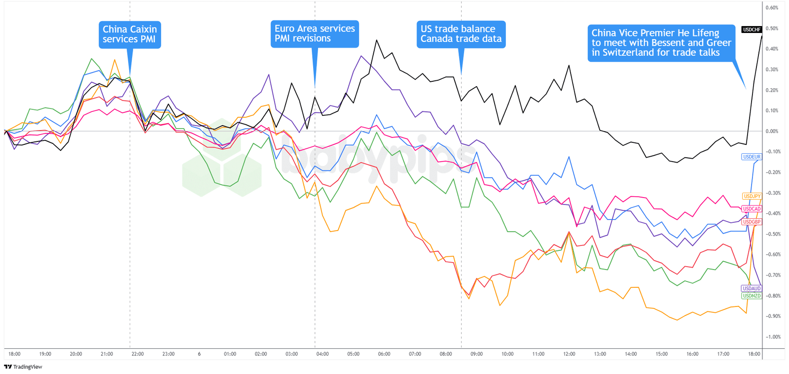 Überlagerung von USD gegenüber großen Währungen Diagramm von TradingView