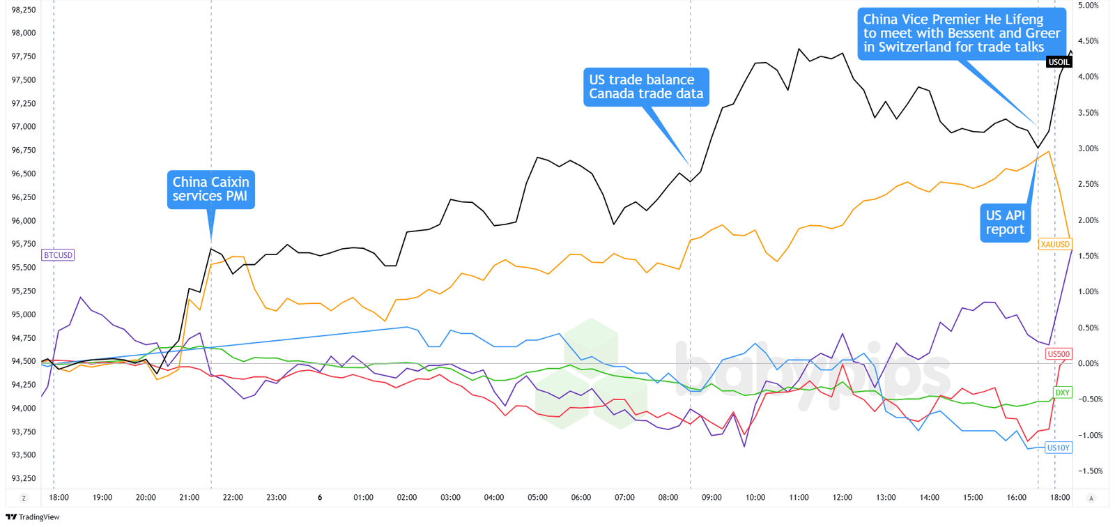 Der dramatischste Schritt kam gegen Ende des Handelstages, als die Nachricht brach, dass der chinesische Vize -Premier, den Lifeng mit US -Beamten in der Schweiz treffen würde. Diese Ankündigung löste einen scharfen Aufwärtsspeicher im Dollar aus, was den plötzlichen Optimismus widerspiegelte, dass die Handelsspannungen sich verringern und in wenigen Minuten einen Großteil der Tagesverluste löscht.