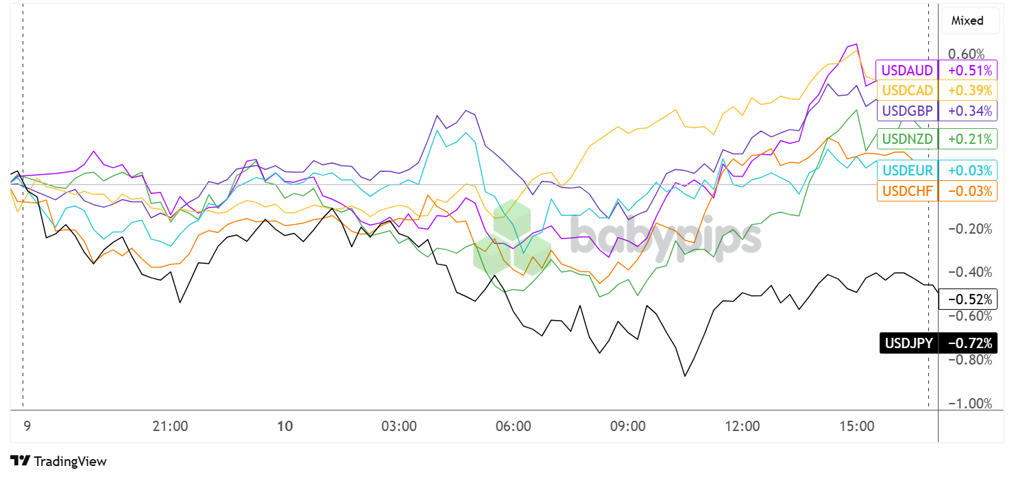 Trotzdem konnte USD/JPY (-0,52%) nicht in positives Gebiet zurückkehren, während USD/CHF (-0,03%) Verluste abschneiden konnte.