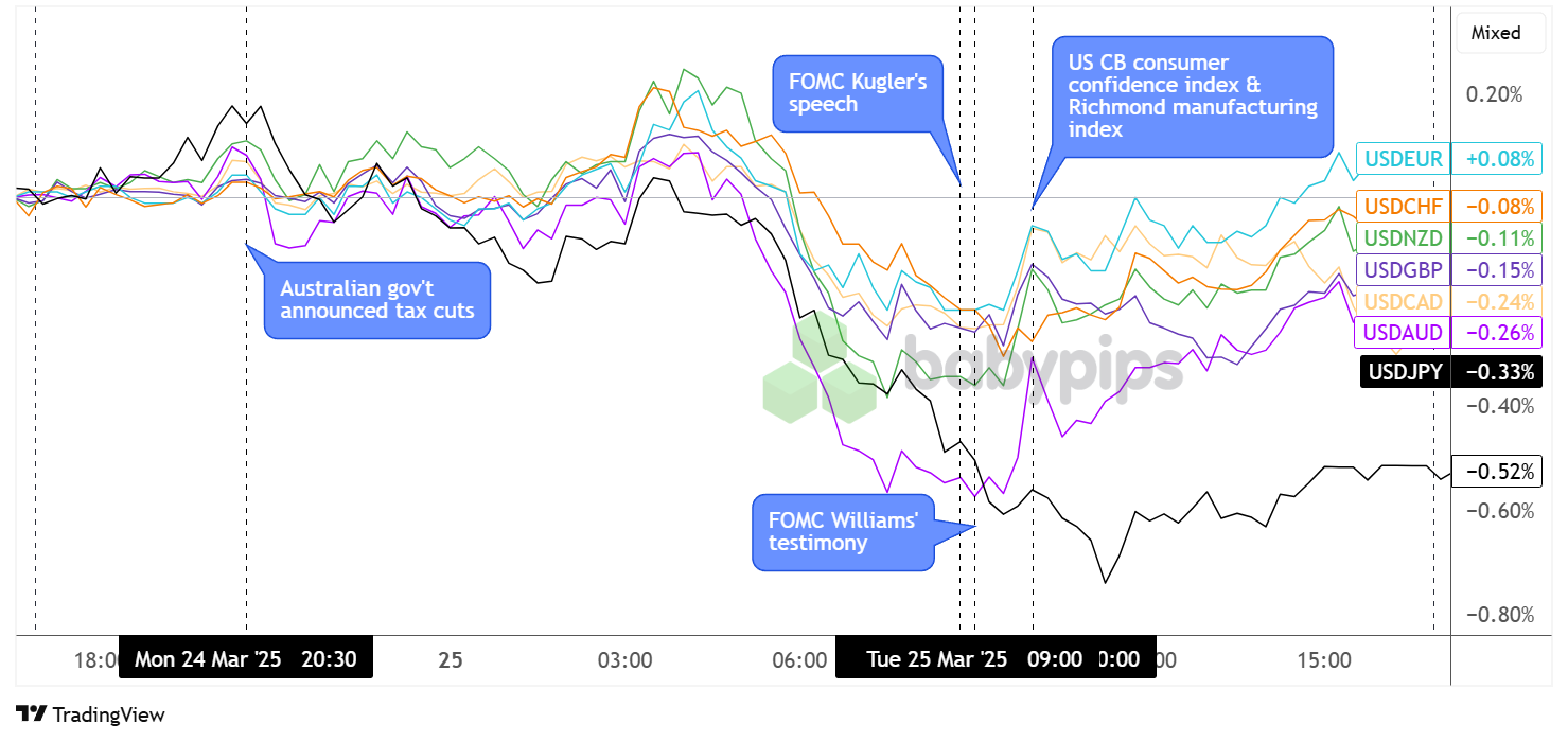 Der Rückgang schien die Rede von Fed Beamten Kugler zu pausieren, da sie optimistisch in Bezug auf Inflations- und Beschäftigungsaussichten schien, aber die Gewinne waren begrenzt, nachdem die US -Datenpunkte schwächer als erwartet waren. Der Richmond Fed -Index rutschte von 6 auf -4, anstatt sich wie erwartet zu verbessern, während der CB -Verbraucher -Vertrauensindex im März von einer verbesserten 100,1 -Lesung auf 92,9 fiel.