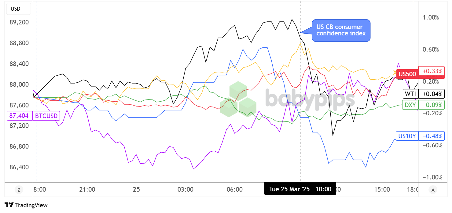 - US -amerikanische CB -Verbrauchervertrauen für März 2025: 92,9 (94,4 Prognose; 98,3 vorher)