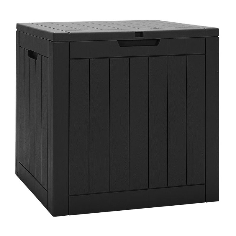 Der Deckel verfügt über die Möglichkeit, ein Vorhängeschloss anzubringen, um Diebstahl zu verhindern und Ihre Gegenstände sicher aufzubewahren. Es verfügt über seitliche Griffe zum einfachen Manövrieren und ein benutzerfreundliches Design, für dessen Aufbau kein Werkzeug erforderlich ist. Es verfügt über eine einfache Klappdeckelöffnung, die für Kinder und andere, die einen einfacheren Zugang bevorzugen oder benötigen, zugänglich ist. Diese Deckbox wäre auch eine tolle Ergänzung während eines Campingausflugs und eignet sich perfekt zum Aufbewahren von Lebensmitteln und Snacks, um Waschbären und andere Kleintiere fernzuhalten. Darüber hinaus können Sie darin alle Ihre Strandartikel wie Handtücher, Snacks, Spielzeug und Sonnenhüte aufbewahren. Die Box misst 20,9 Zoll x 22,1 Zoll x 17,1 Zoll und ist in den Farben Schwarz und Hellbraun erhältlich.
