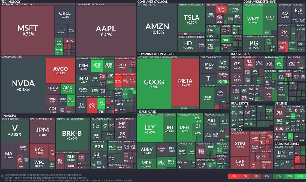 - 📉 Halbleiter: Der Sektor zeigte gemischte Signale, wobei NVIDIA (NVDA) um 0,18% stieg, während Broadcom (AVGO) um 1,99% zurückging. Bedenken hinsichtlich Überbeamte und potenziellen Störungen der Lieferkette bleiben weiterhin weit verbreitet.
