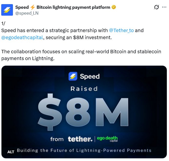 Der Stablecoin-Riese Tether hat eine 8-Millionen-Dollar-Investitionsrunde in das Bitcoin-Startup Speed geleitet, um dessen Mission zu unterstützen, mehr Stablecoin-Zahlungen für Unternehmen im Bitcoin-Layer-2-Lightning-Netzwerk zu ermöglichen.