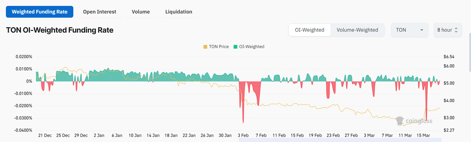 Entsprechend CoinglassDas offene Zinsen von Toncoin stieg in den letzten 24 Stunden um 10,55%, da das offene Zinssatz (OI) positiv wurde. Dies deutet auf das Vertrauen der Anleger in Pavel Durov hin.