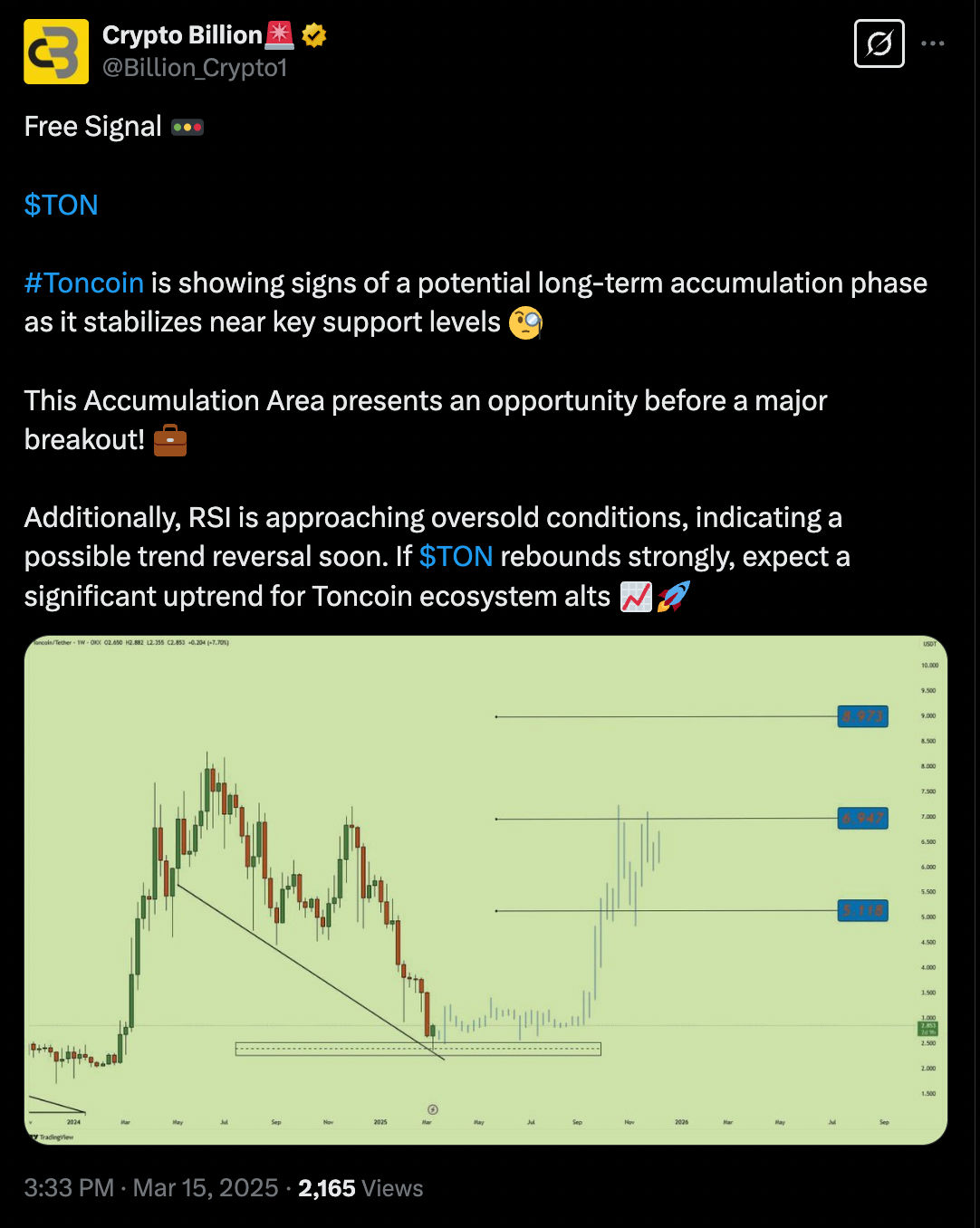 Die bullische Umkehrung von Ton, insbesondere nachdem er auf 2,35 US -Dollar gesunken ist und das niedrigste Level seit einem Jahr ist, hat Händler mit dem Krypto -Analyst Crypto Patel die wichtigsten Preisniveaus beobachten Hervorhebung Eine “großartige Eingangszone” für langfristige Investoren.
