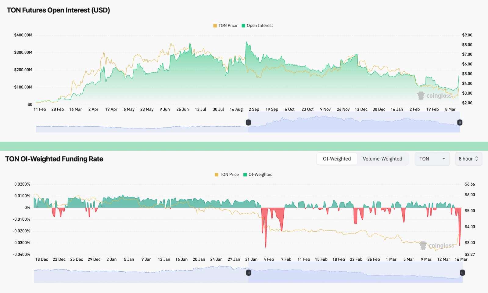 Ab dem 16. März lag die OI von TON rund 169,12 Millionen US -Dollar, verglichen mit 80,75 Millionen US -Dollar, nur fünf Tage zuvor.