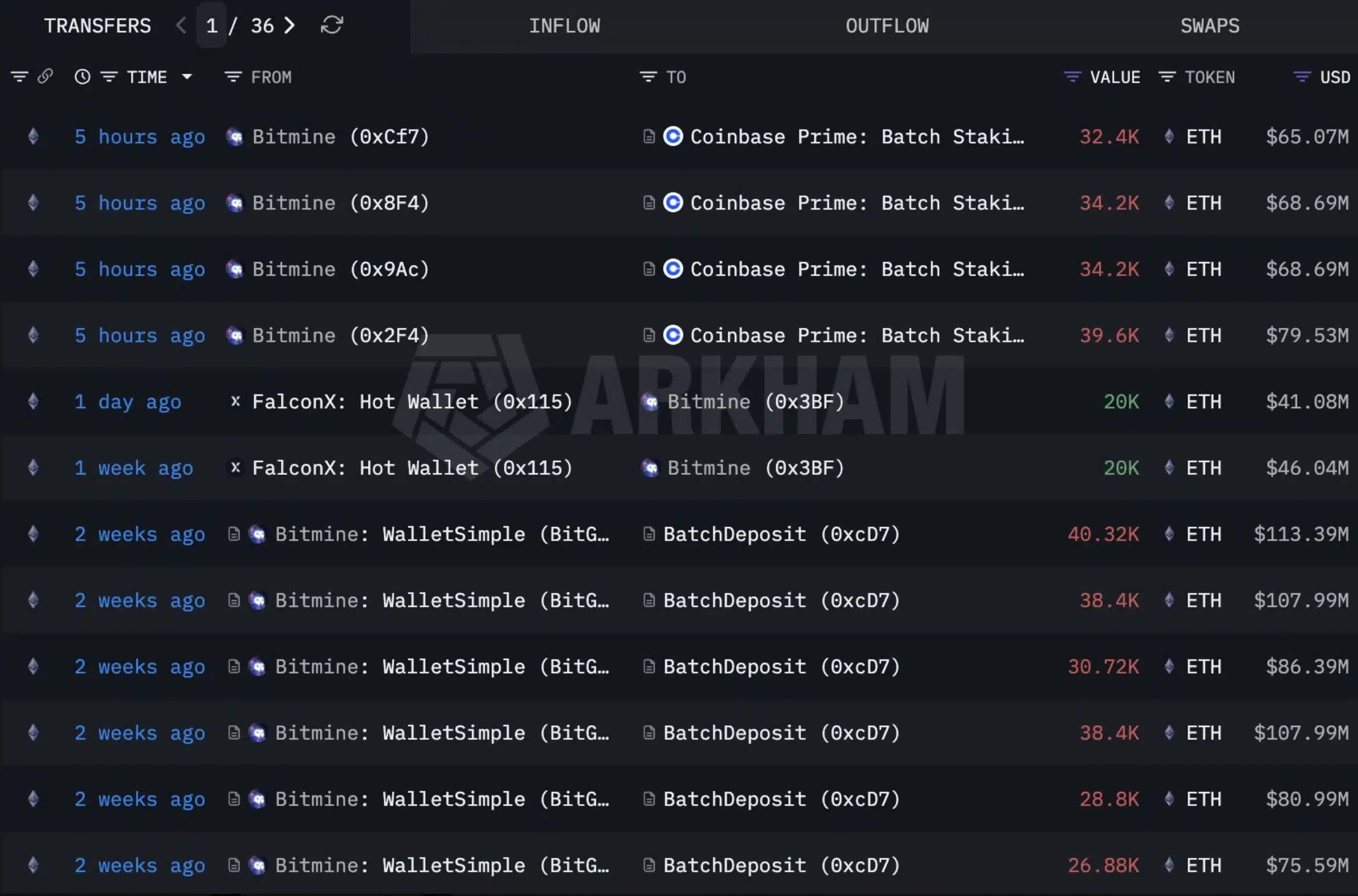 In den letzten zwei Tagen hat BitMine Ethereum aggressiv gekauft, insbesondere in der Nähe der wichtigen 2.000-Dollar-Marke. Am 9. Februar, als ETH auf 2.011,82 $ fiel, wurde das Unternehmen gekauft 20.000 ETH im Wert von etwa 41 Millionen US-Dollar von FalconX.