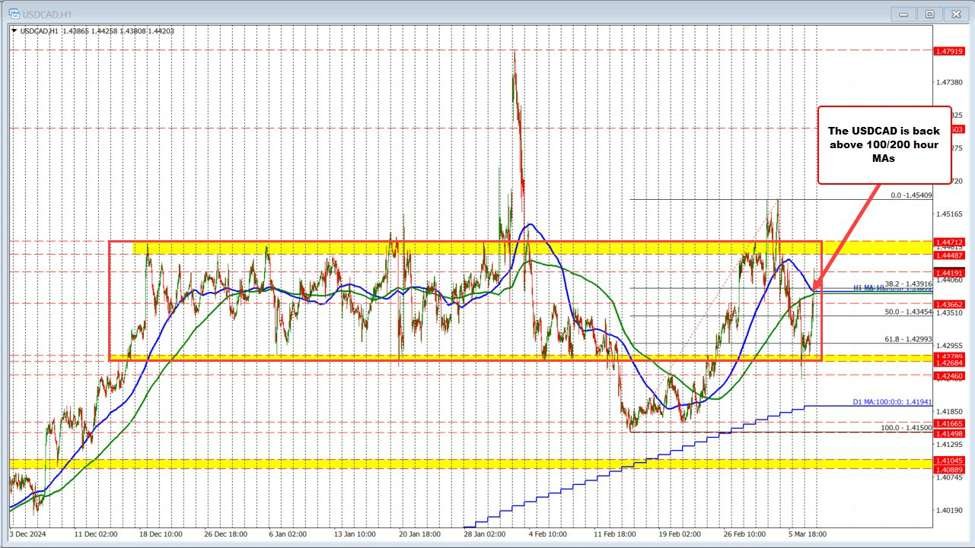 Das USDCAD ist höher und der Preis über den 100 -Stunden -Durchschnittswerten in der Nähe von 1,4388.