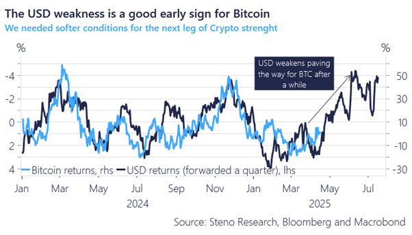 Hinzufügen zur Mischung ist frisch US -Dollar Schwächeetwas, das Hedgefonds -Schöpfer Andreas Steno Larsen als „gutes frühes Zeichen für Bitcoin“ bezeichnete.