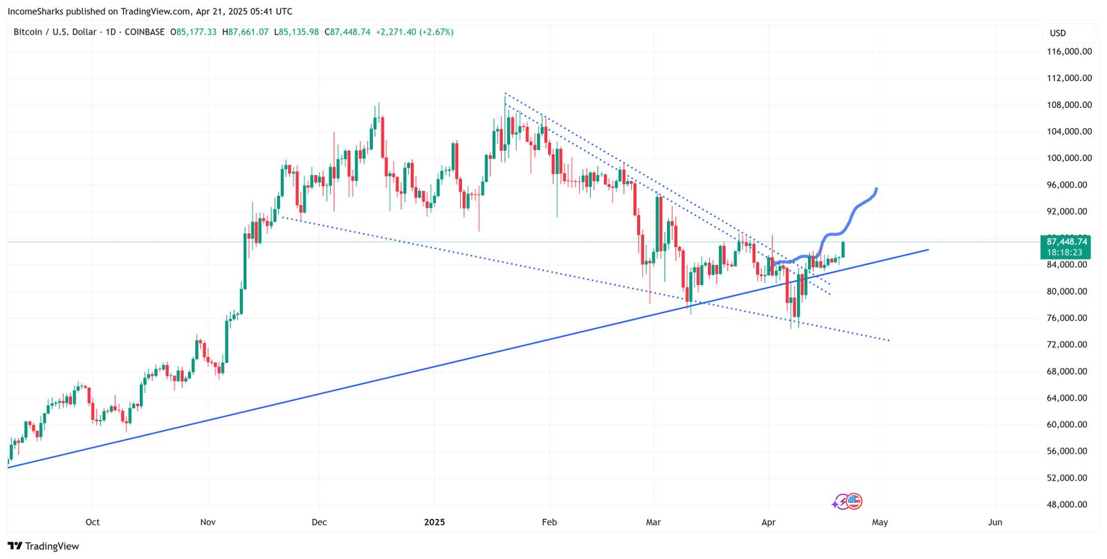 BTC/USD erreichte nach der wöchentlichen Schließung am 20. April 87.705 US -Dollar von Daten von CoinTelegraph Markets Pro Und TradingView Shows, sein höchstes in Fast drei Wochen.