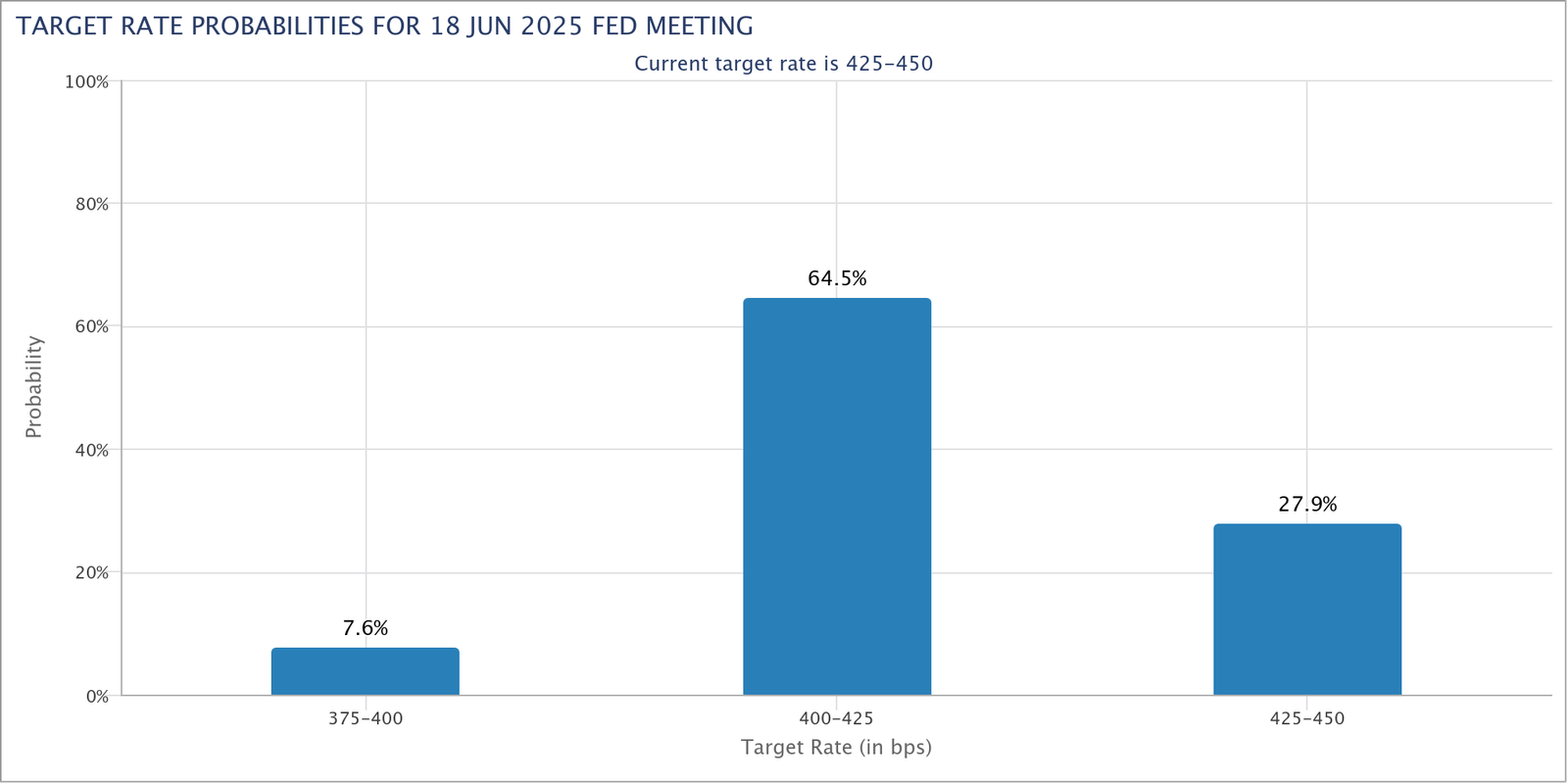 Die neuesten Daten von CME Group’s Fedwatch -Tool spiegelt dies wider, und Händler sehen einen Zinssatz, der wahrscheinlich nur auf der Sitzung der Fed im Juni wahrscheinlich ist.