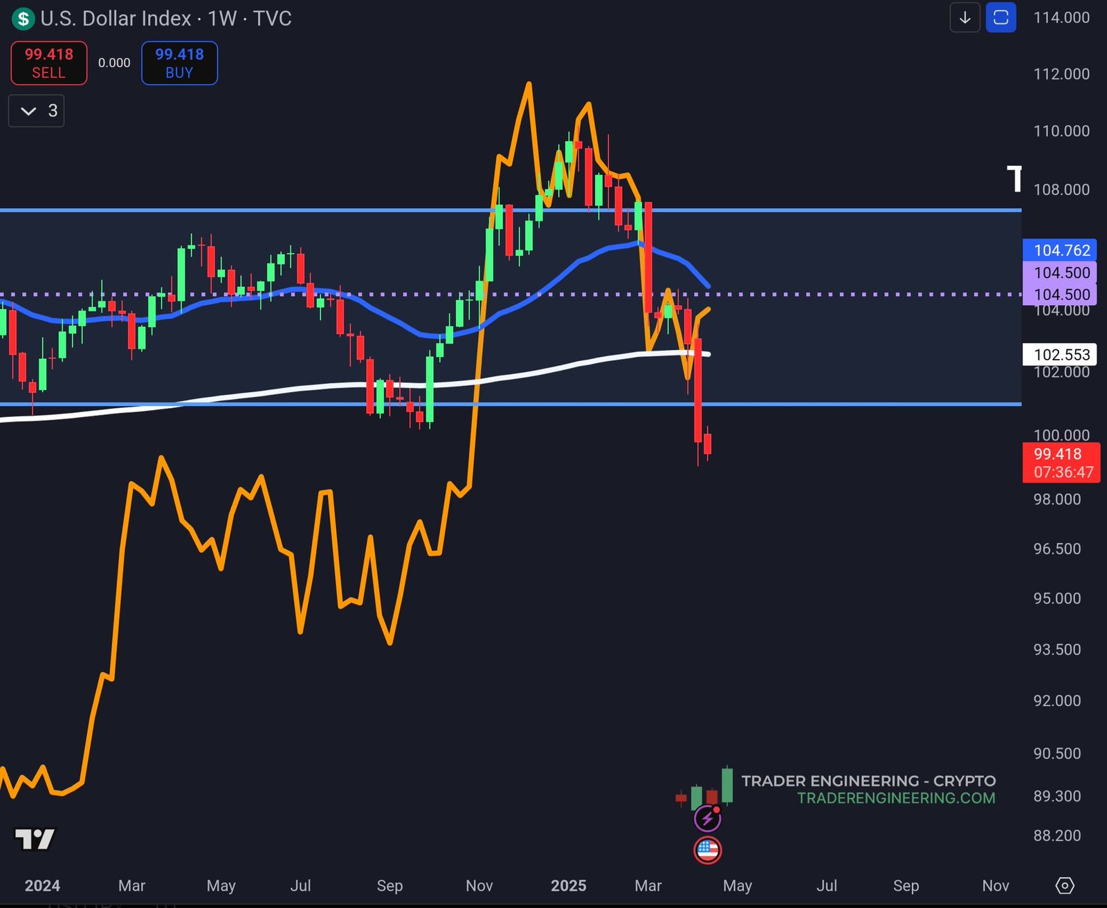 Der US -Dollar -Index (DXY), der die Greenback -Stärke gegen einen Korb mit großen Währungen des US -Handelspartners verfolgt, war zum Zeitpunkt des Schreibens am 21. April um weitere 1,3% gesunken. Dies brachte wiederum den Nachteil auf fast 10%.