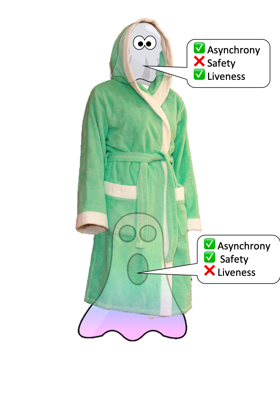 Sicherheit ist die Idee, dass Entscheidungen nicht ungemacht werden können, während Lebendigkeit erfasst die Vorstellung, dass neue Dinge entschieden werden können. Ein Protokoll ist Asynchronus Wenn es nicht gebunden ist, wie lange eine Nachricht dauert, um zu geliefert zu werden.